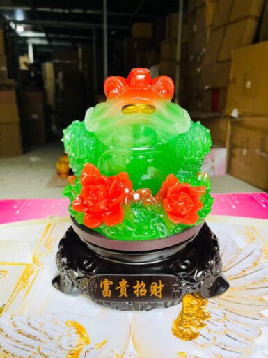 - Màu vàng hoặc màu vàng đồng: Màu vàng thường được kết hợp với Cóc Thiềm Thừ để tượng trưng cho sự giàu có và tài chính. Đây là một lựa chọn phổ biến cho những gia chủ tin vào tâm linh muốn tăng cường tài lộc cho bản thân và gia đình.